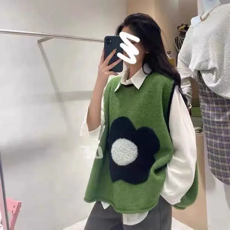 New Knitted Vest Women's Autumn Loose Small Fresh Flower Vest