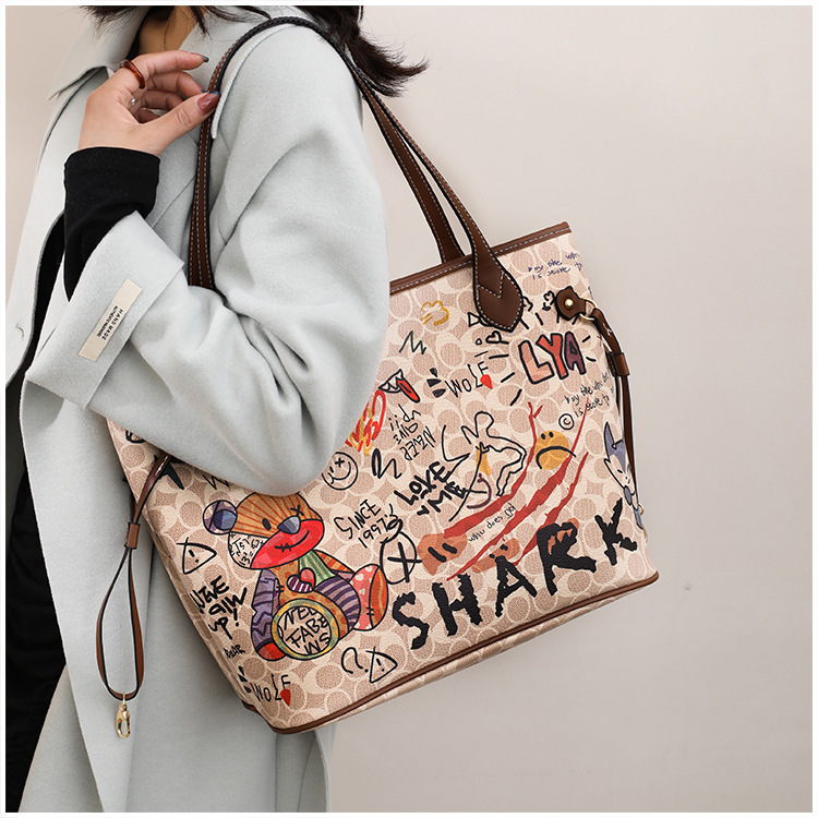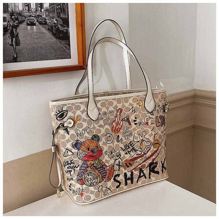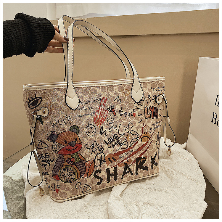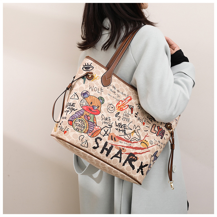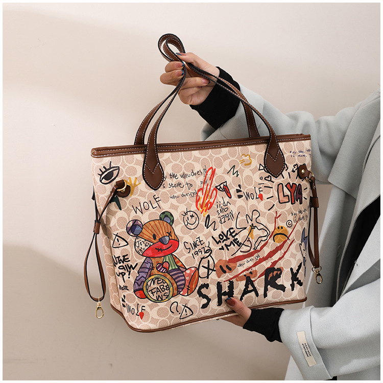 Fashion Women's Bucket Graffiti Bag Tote Bags Luxury Designer Cute Bear Handbag Higher Quality Large Commute Female Tote Bag