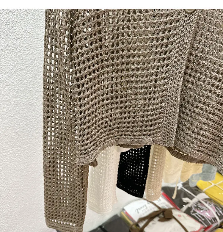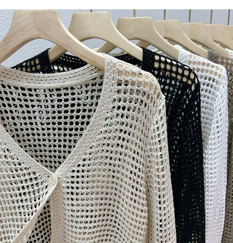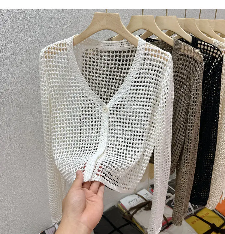 Hollow Mesh Ice Silk Sunscreen Jacket for Women's Summer Long Sleeved Outerwear with Small Shawl Knitted Cardigan