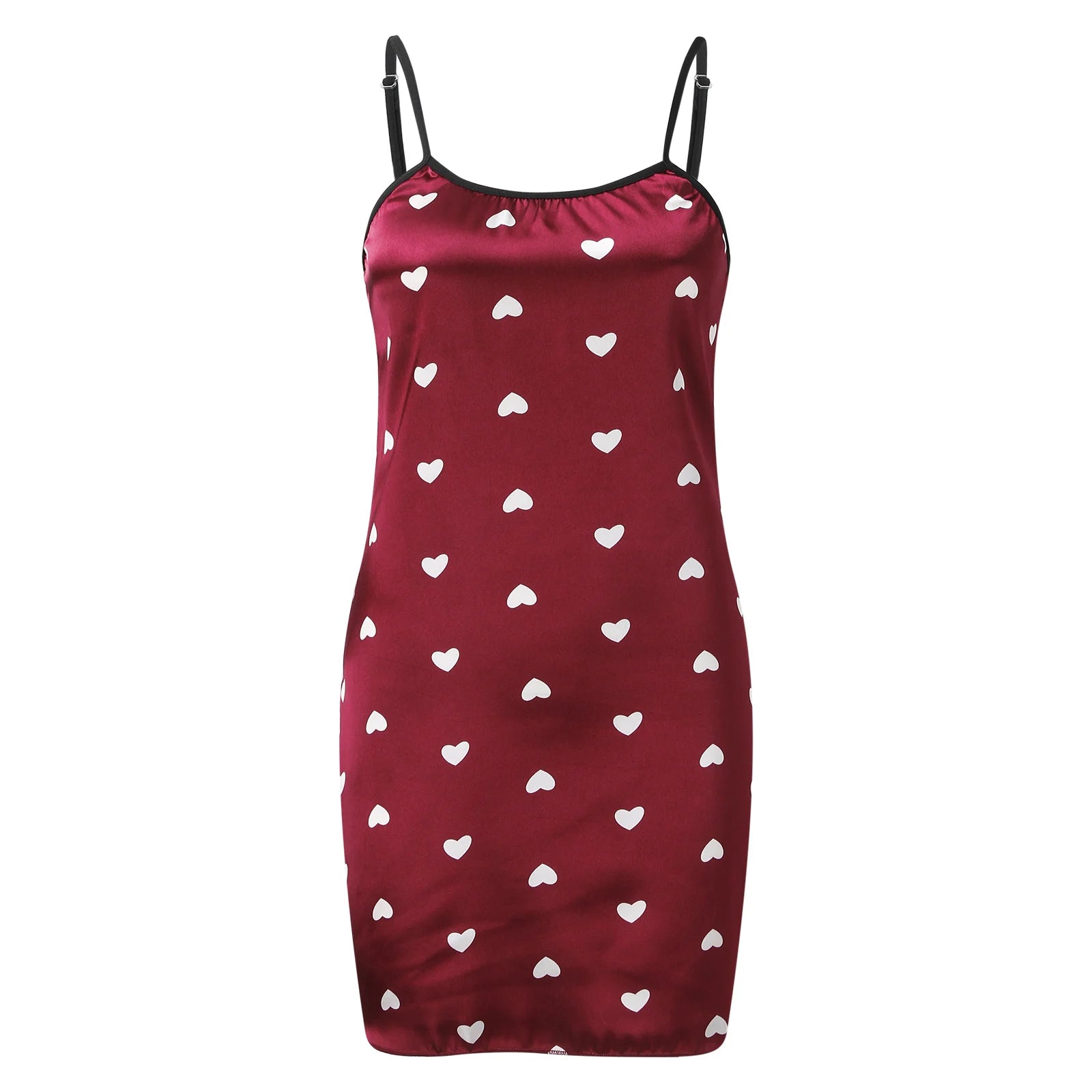 Sexy love print slip nightdress in imitation silk.